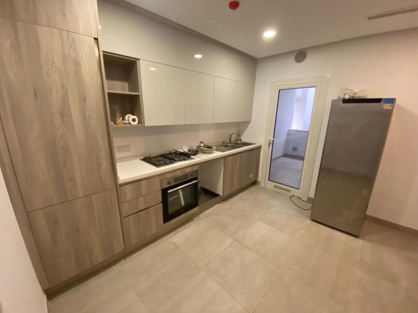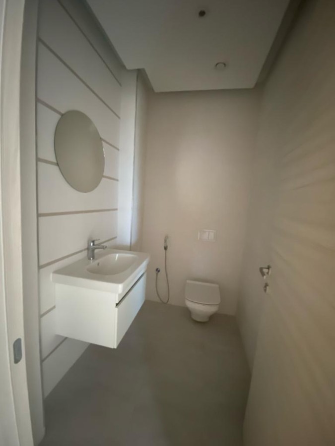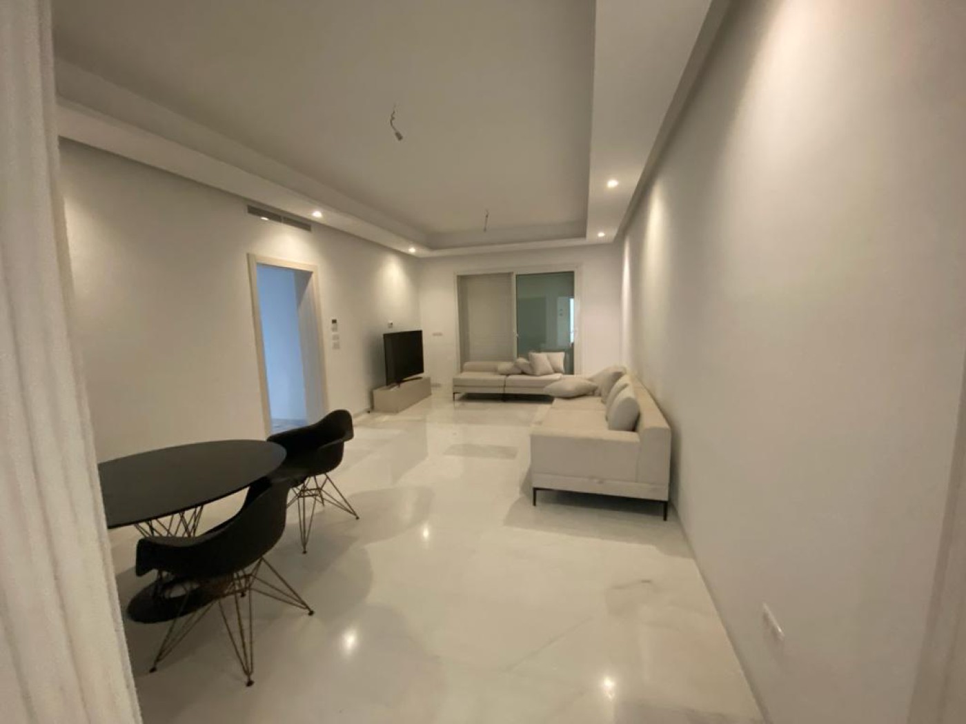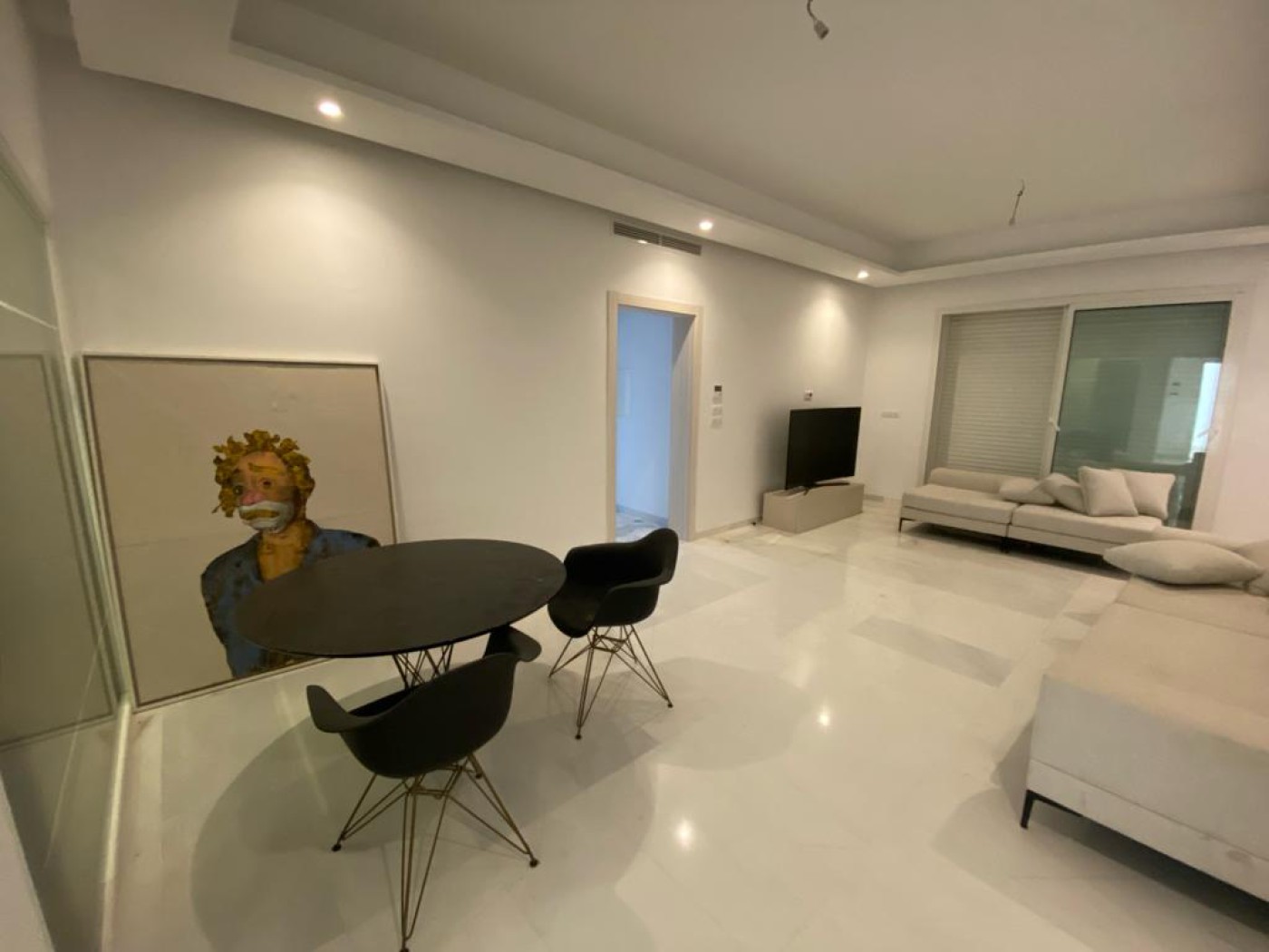Apartment JANNET Hammamet Nord Tourist Zone for sale beautiful high standard apartment in a guarded and private residence well located in a quiet area on the 1st floor 5 minutes from a very beautiful beach, with a living area of 180 m2 covered, consists of a large living room dining room, spare bathroom, large independent fitted and equipped kitchen A suite with private bathroom and a bedroom, bathroom, large terrace with panoramic view, equipped with central heating and air conditioning.