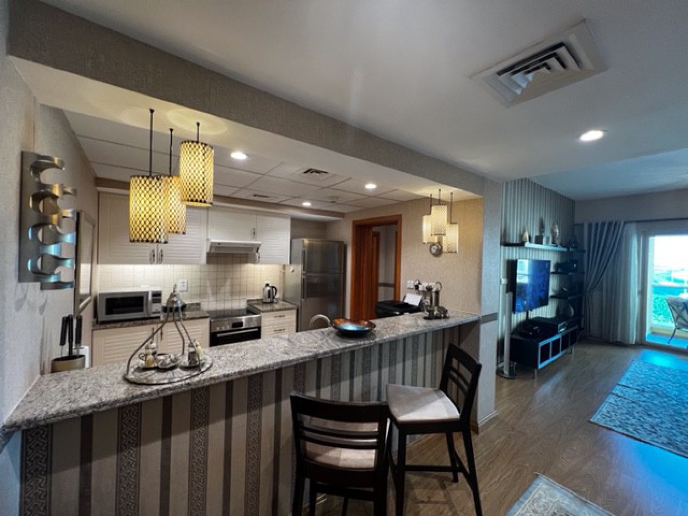 A Fully Furnished & serviced XL one bedroom + Hall + dining room + balcony with stunning views apartment