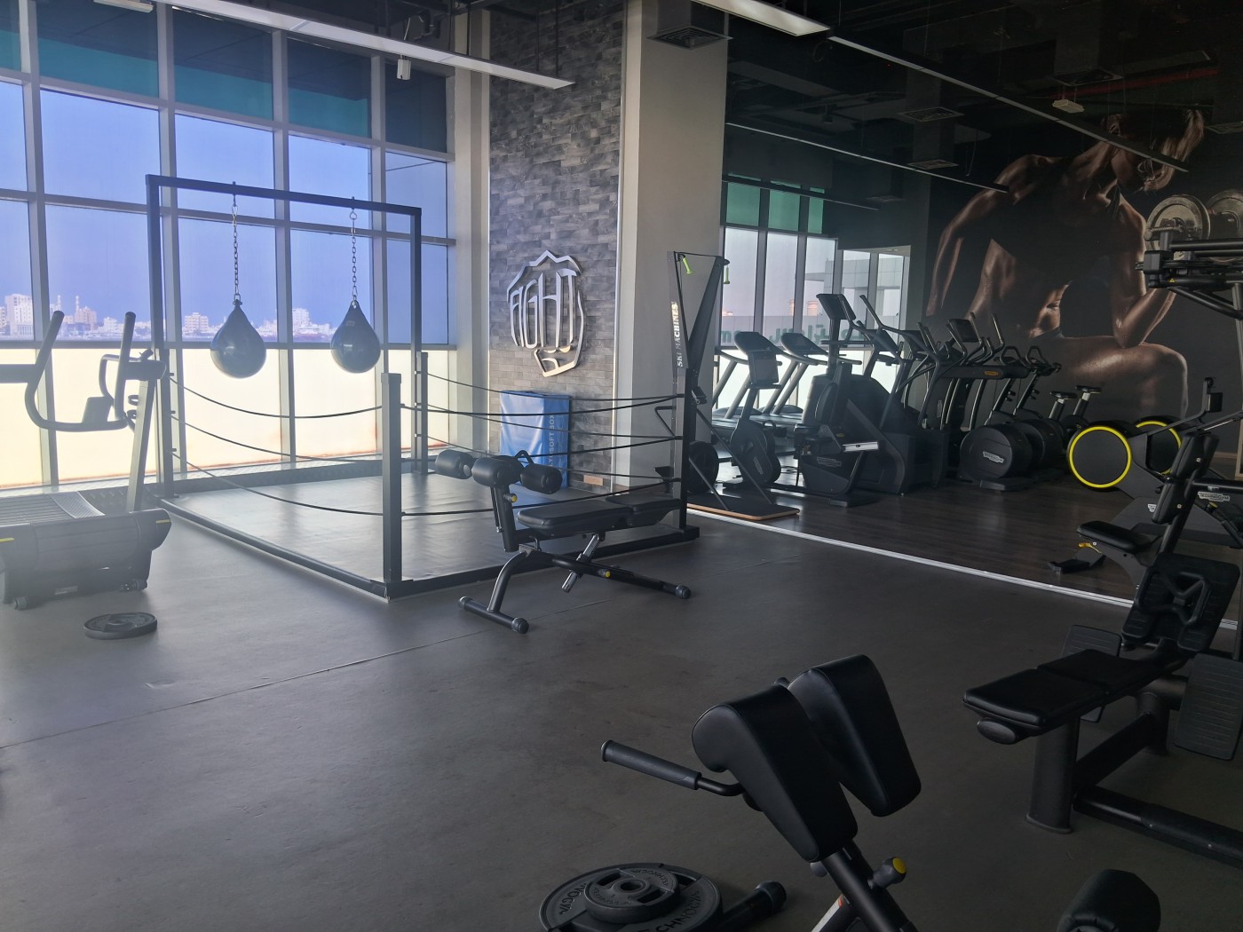 Each bedroom is en suite with both shower and bathtub, complemented by a guest washroom. The tower amenities include two professional gyms, an outdoor children`s playground adjacent to the ladies` gym and swimming pool, secure swipe-card access to common facilities, and covered garage parking.