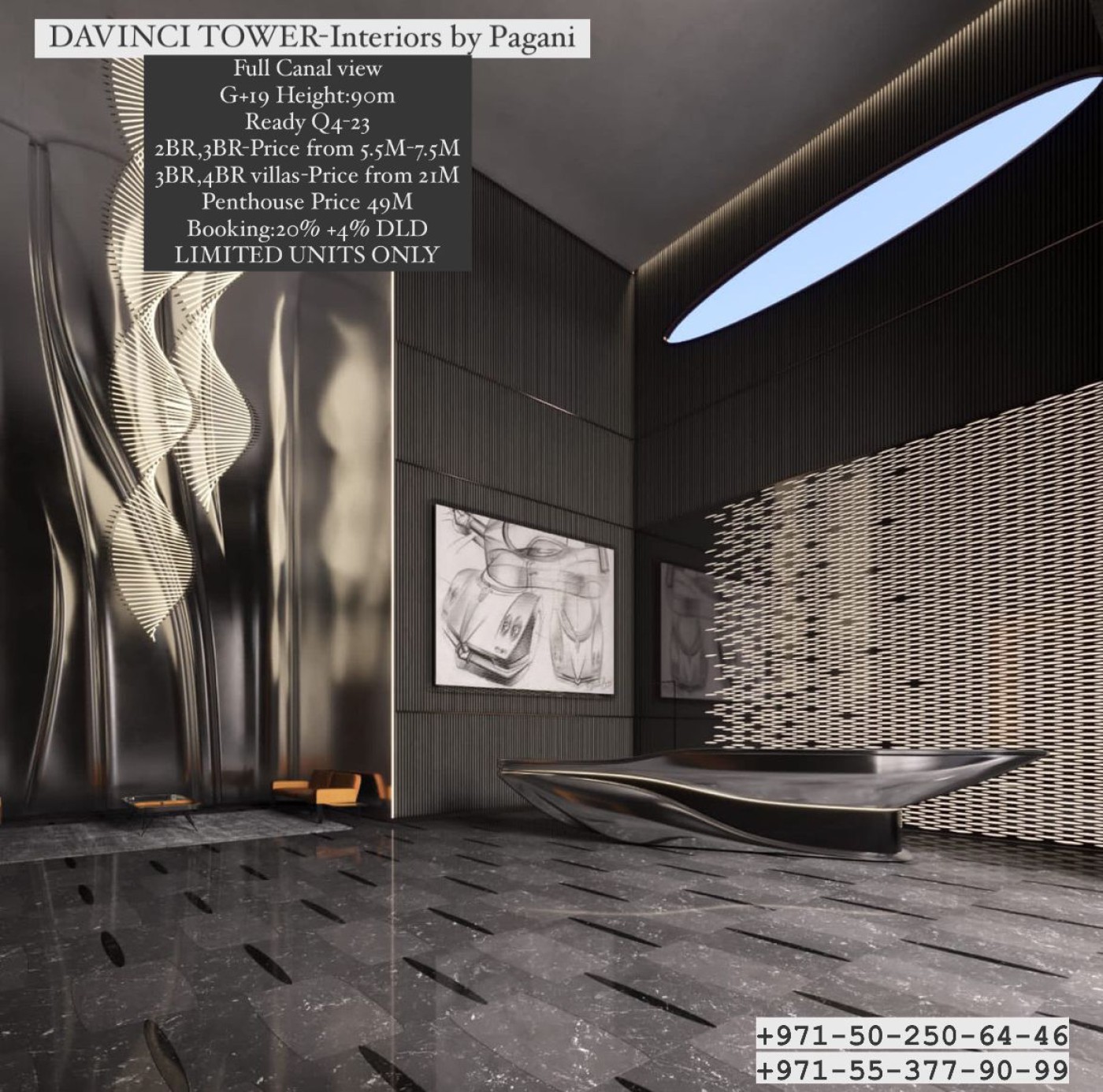 DaVinci Tower by Dar Al Arkan is the first residential building in the world with interiors designed by