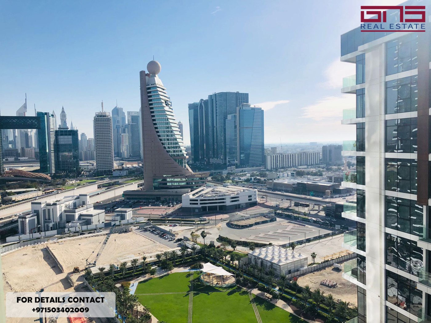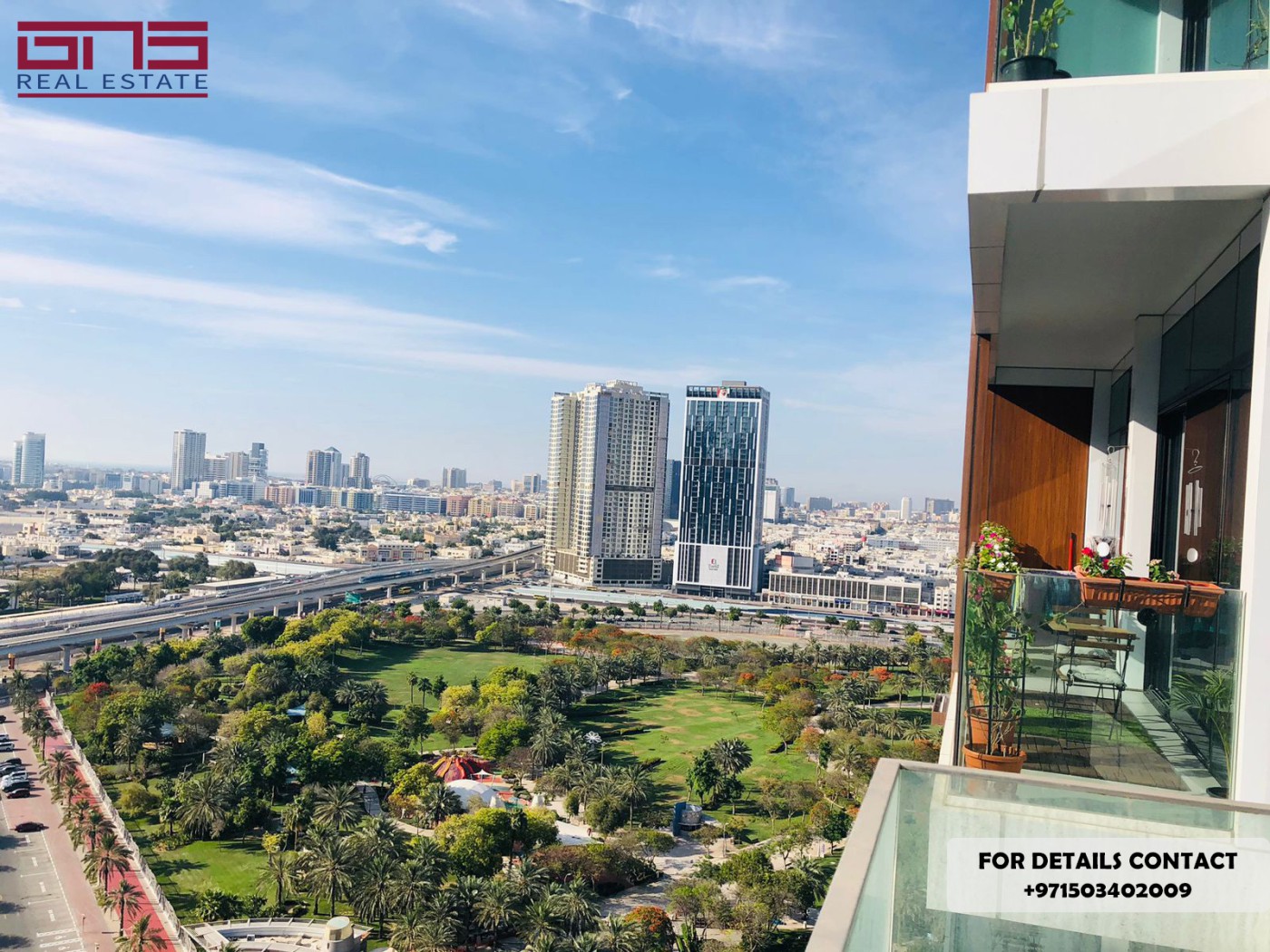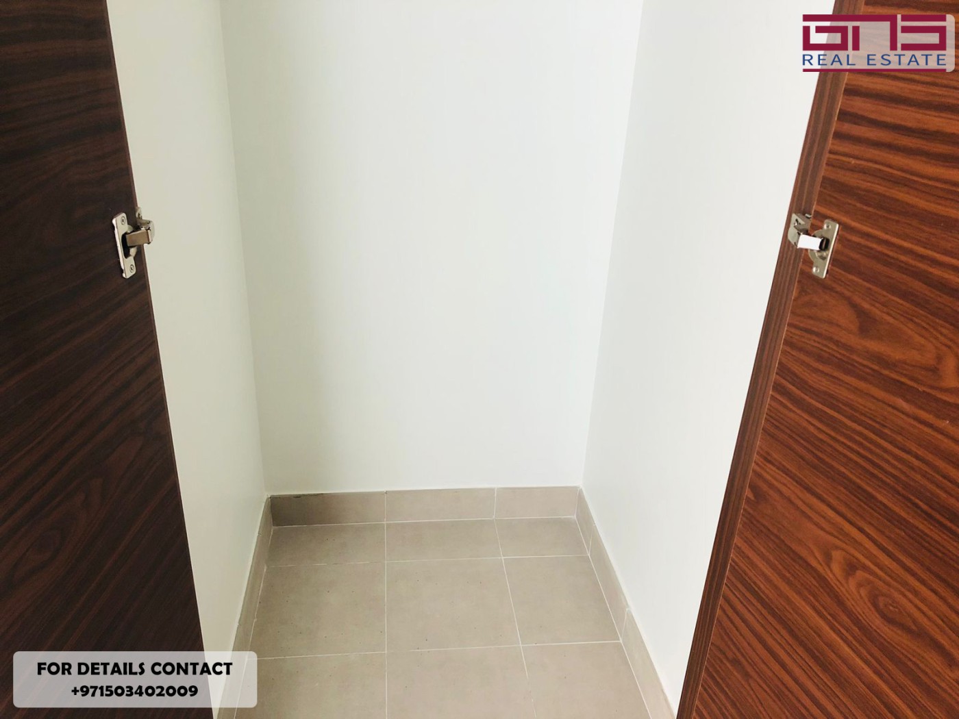 * Kitchen that is partially open and has high-quality wood cabinetry and counters<...