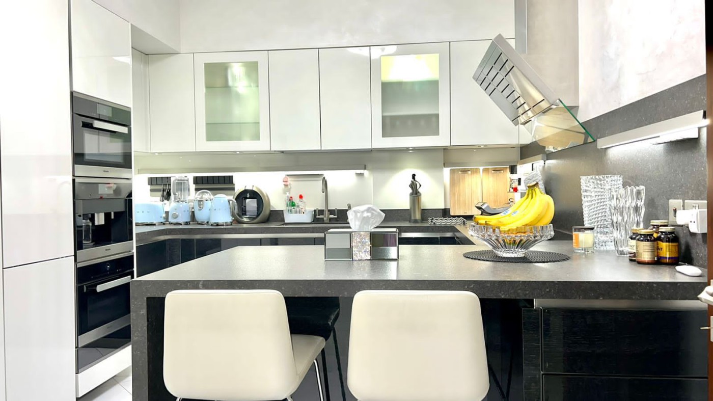 -Visionnaire furniture, hacker kitchen with Miele appliances, bang and olufsen tv, barbecue area at the