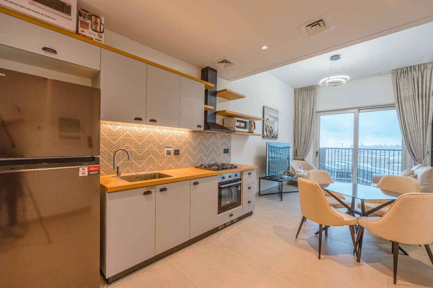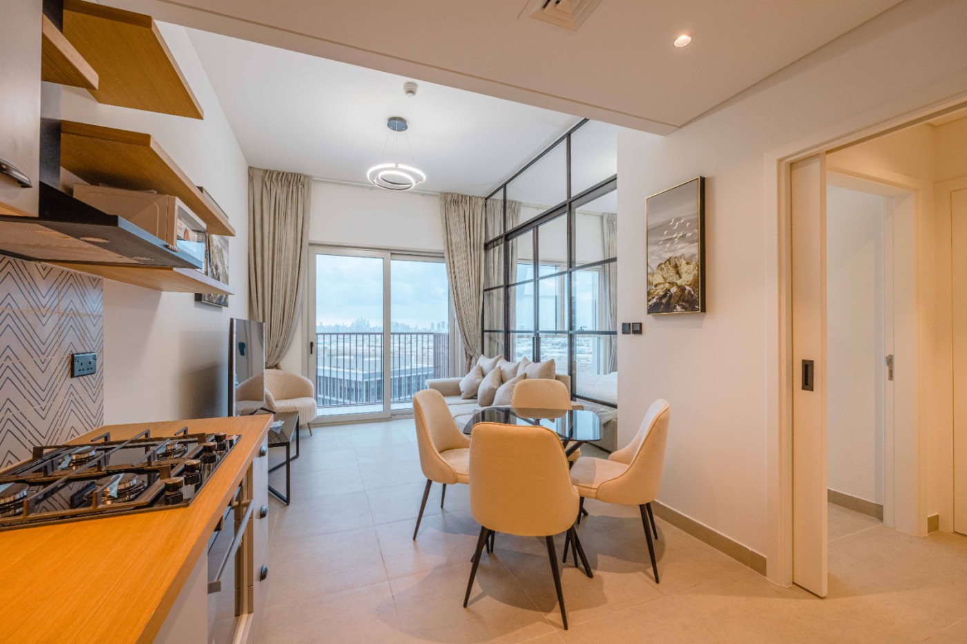 For Sale Property in Dubai Hills Estate Brand New Apartment in Building Collective 2.0 Fully Furnished Apartment 1 Bedroom with Laundry Room & 1 Bath Beautiful View of Burj Khalifa & Al-khail Road Peace & Calm Community All Amenties like Pools,Gym,Kids Play Area,Park,Gaming Room,Cafe in the Building