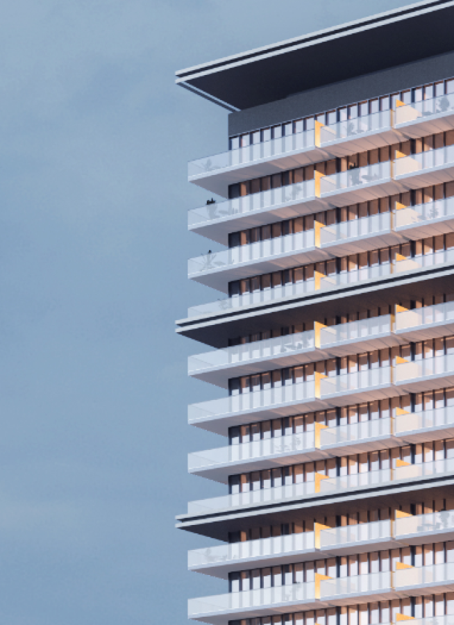 DISTINCTION Binghati Amber features a unique and striking facade that captures essence of its name and the brand. The interior of the hyper property is equally stunning, creating a sense of sophistication to the discerning residents.