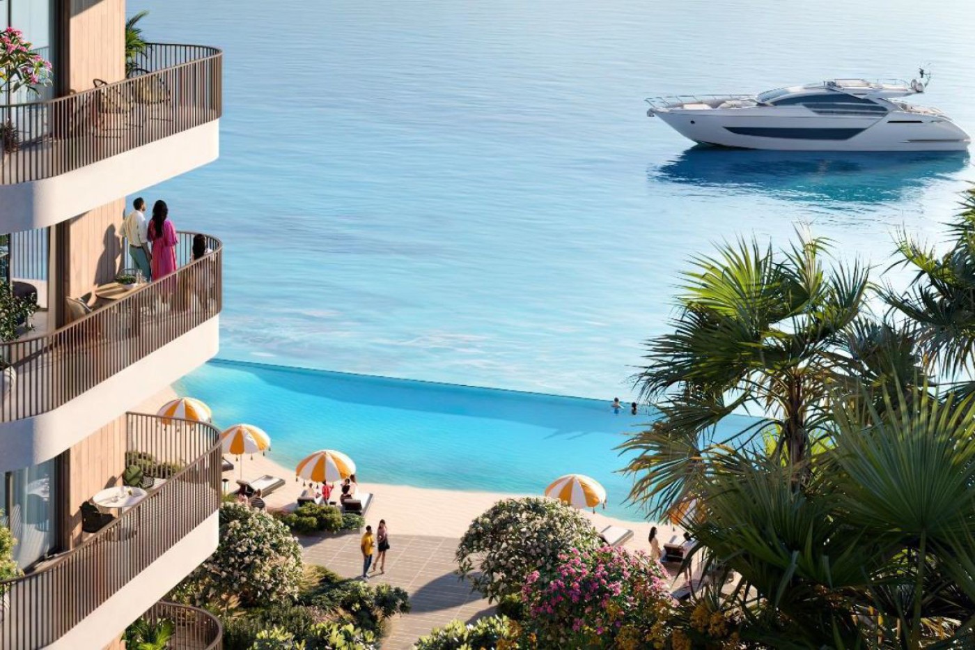 Spanning across 260,000 square meters, this expansive residential community features residential units, a modern beachfront, communal areas, fitness facilities, as well as diverse retail outlets and a mosque.