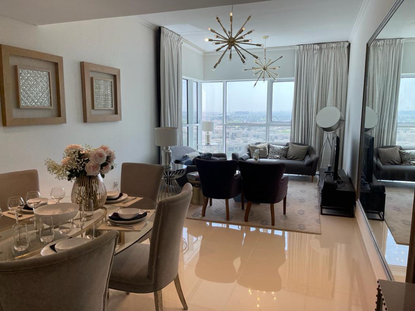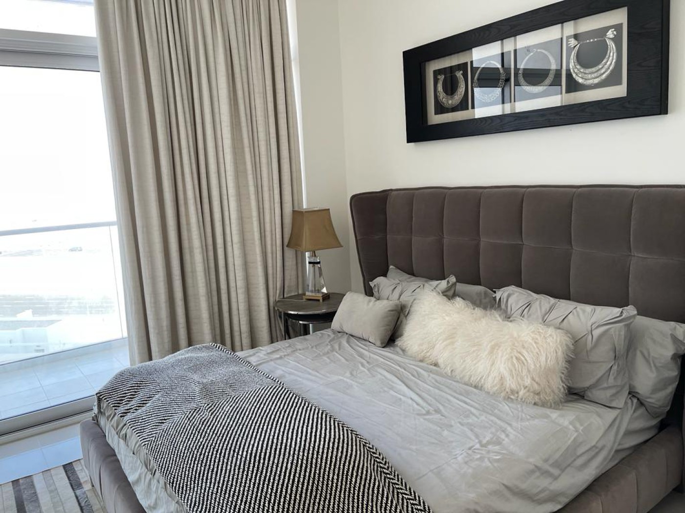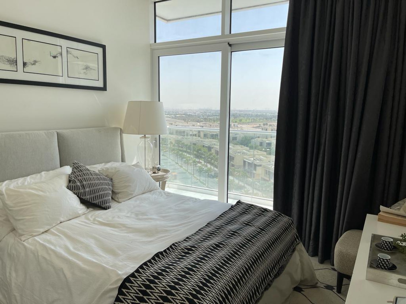 furnished apartment comes with 270 degrees panoramic view. It has an L shape balcony