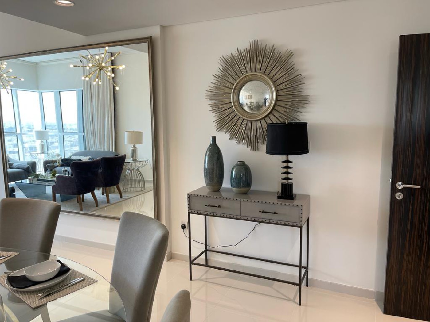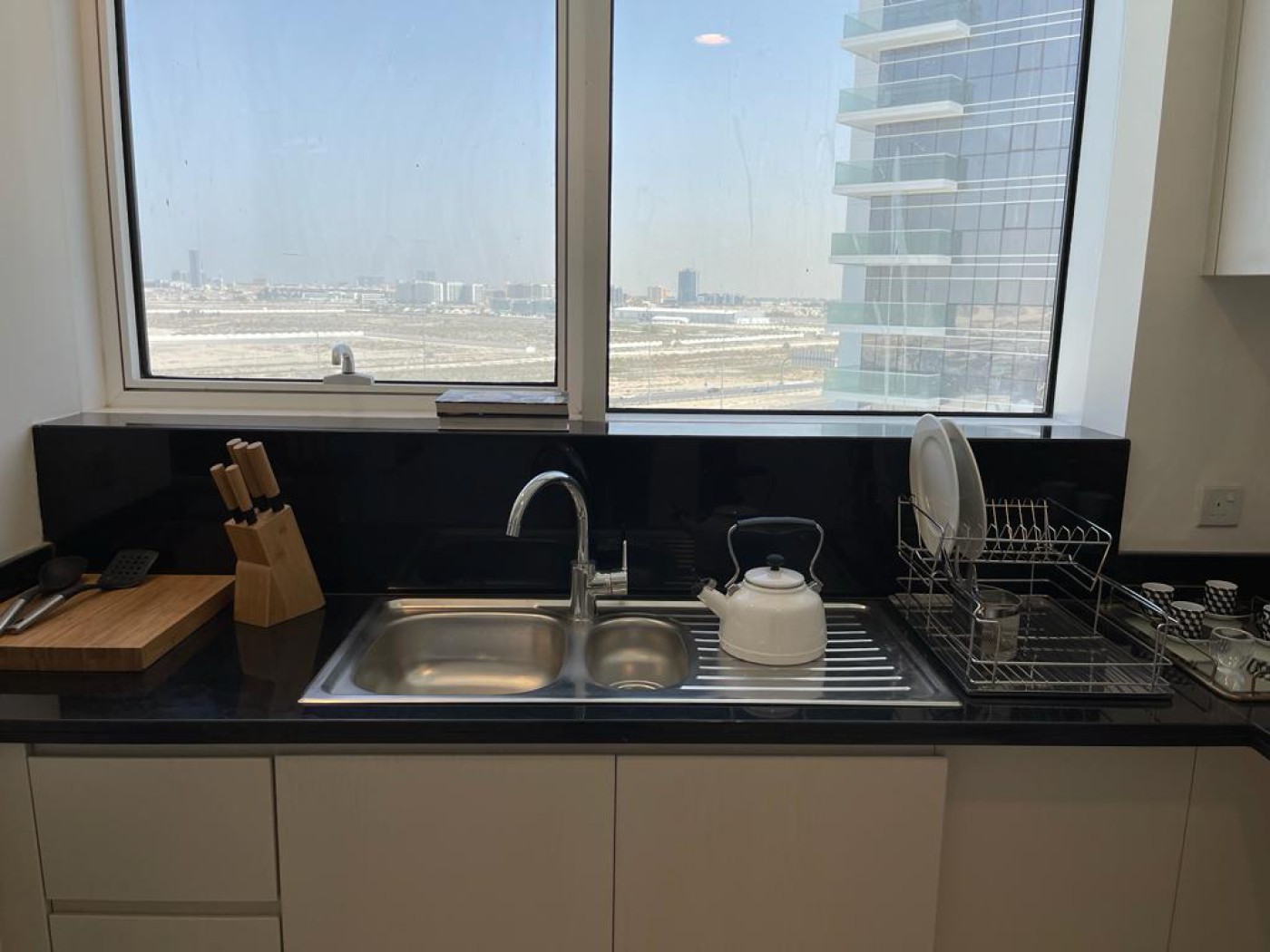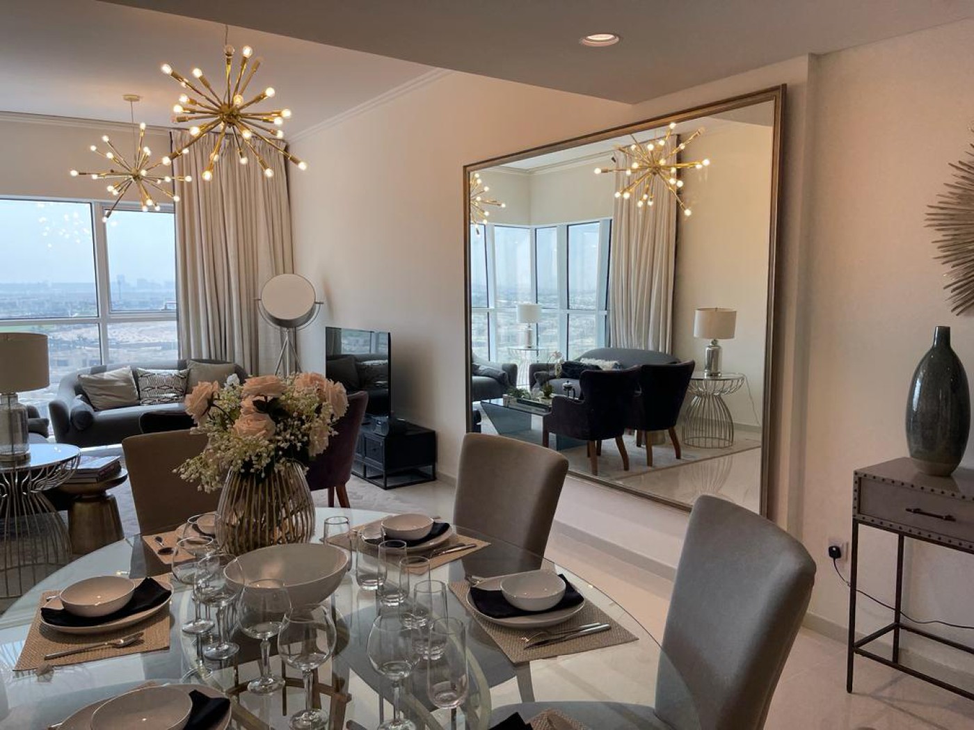 furnished apartment comes with 270 degrees panoramic view. It has an L shape balcony