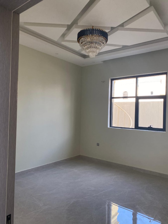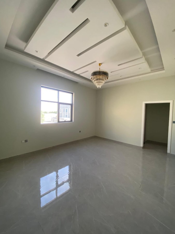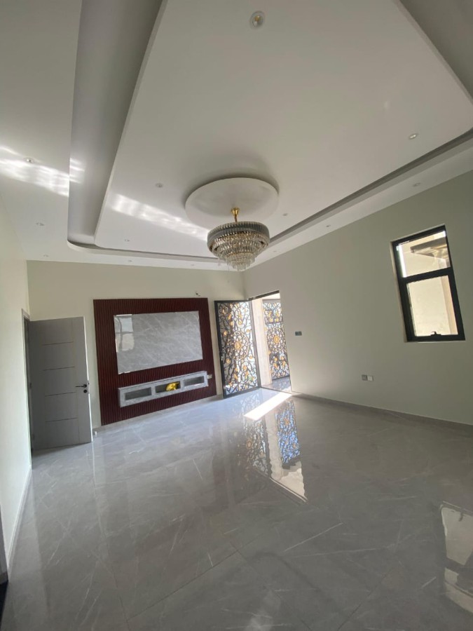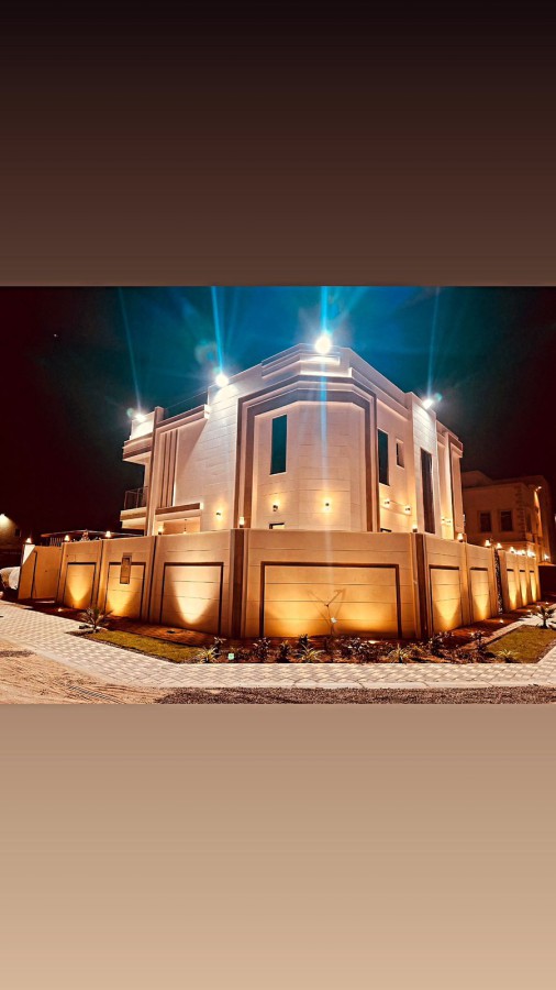 Luxurious villa with 5 master bedrooms, dual-street location, in Al Helio area. Includes living room,