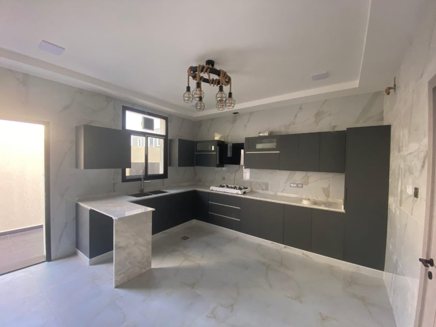 and an elegant majlis. It boasts exceptional design with stone finishing on all four sides and offers