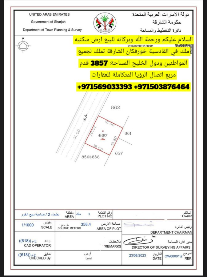 residential land for sale in sharjah. khor fakkan. al qadisiyah. area: 358 square meters.