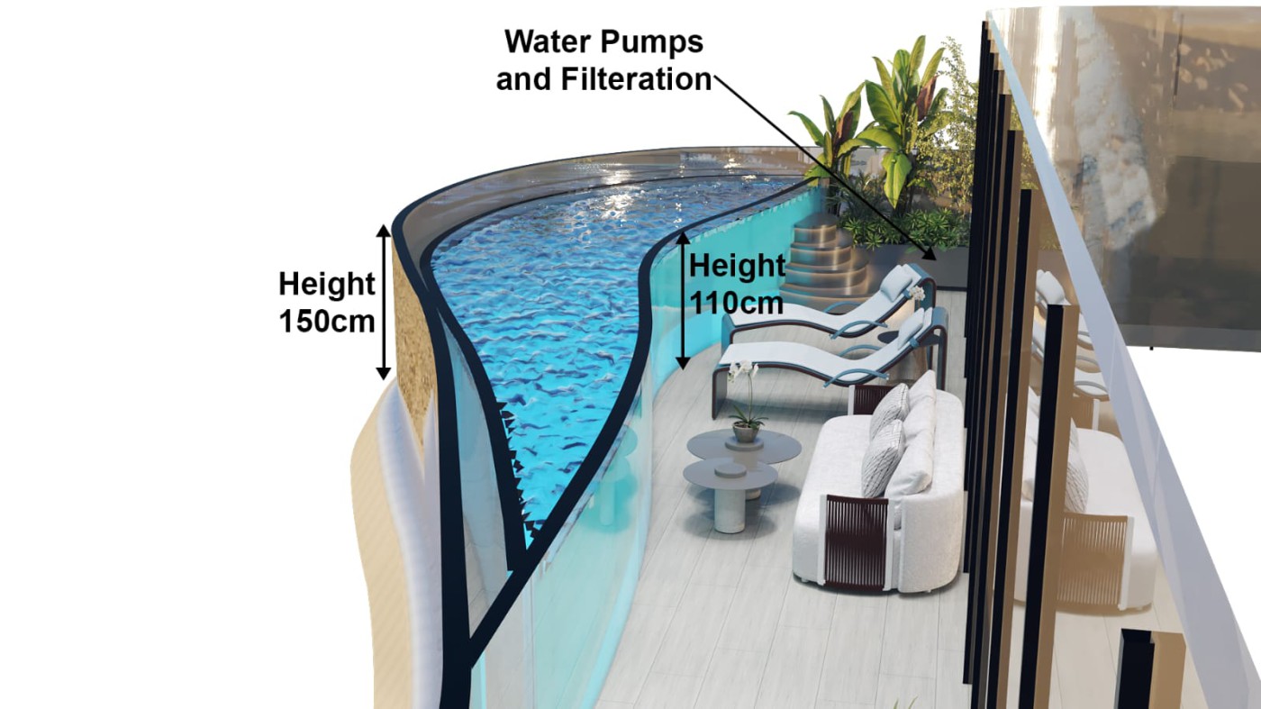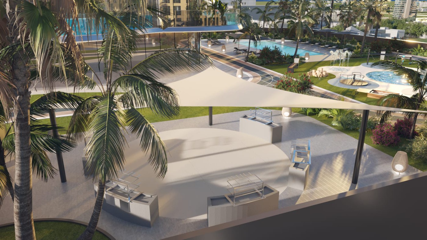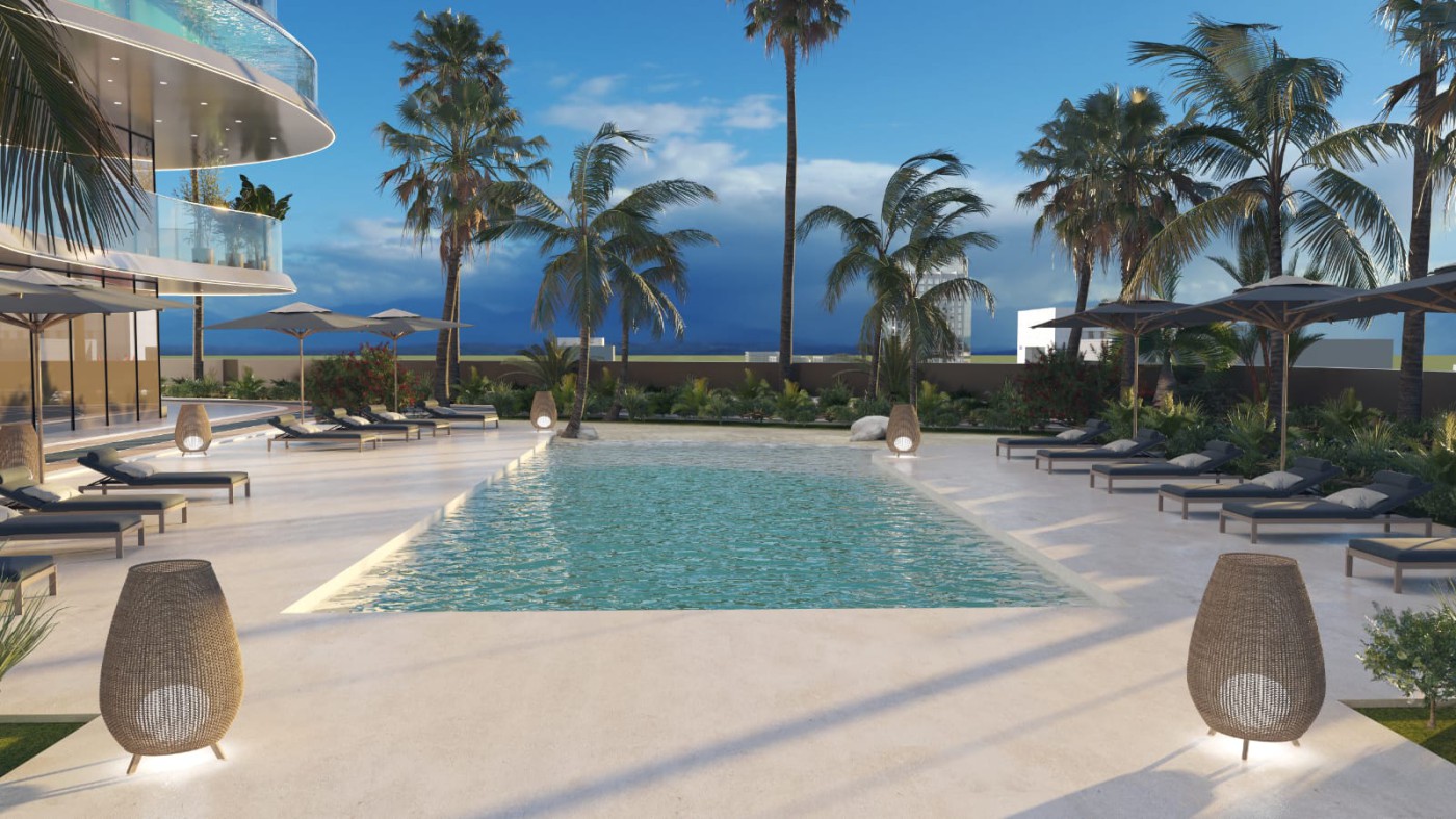 Apartment for sale in the Jumeirah Triangle area in Dubai, installments with the developer over 5 years without interest, each unit has a private swimming pool, with a 10% down payment. Fully furnished first only Delivery 2026 The apartment area is 878 square feet