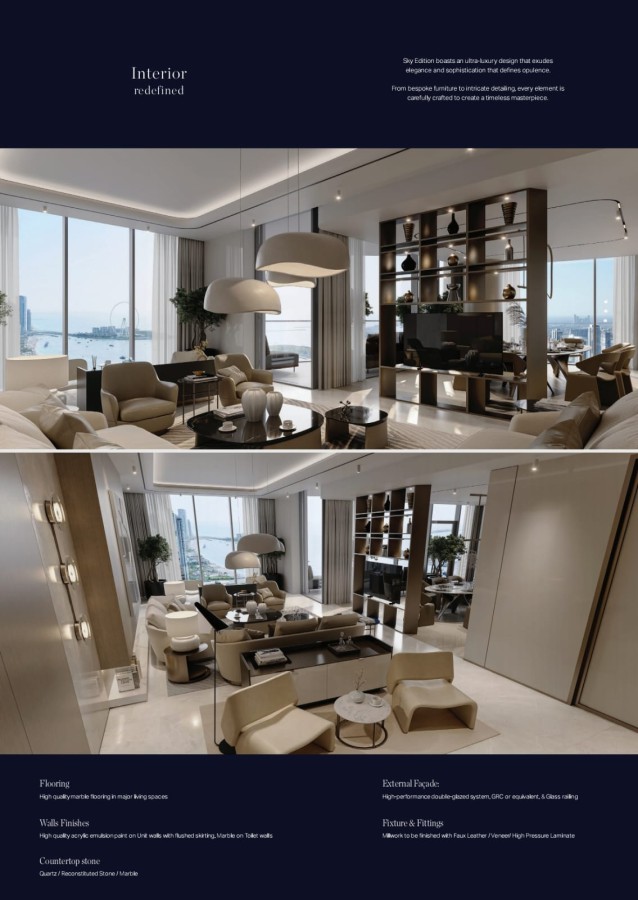 - Unrivaled views of Palm Jumeirah, Burj Al Arab, and Ain Dubai