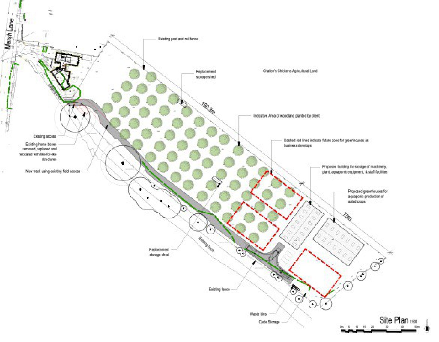 main road. Currently planning permission for 5 buildings - 4x 30 and 1x 30 - total size of