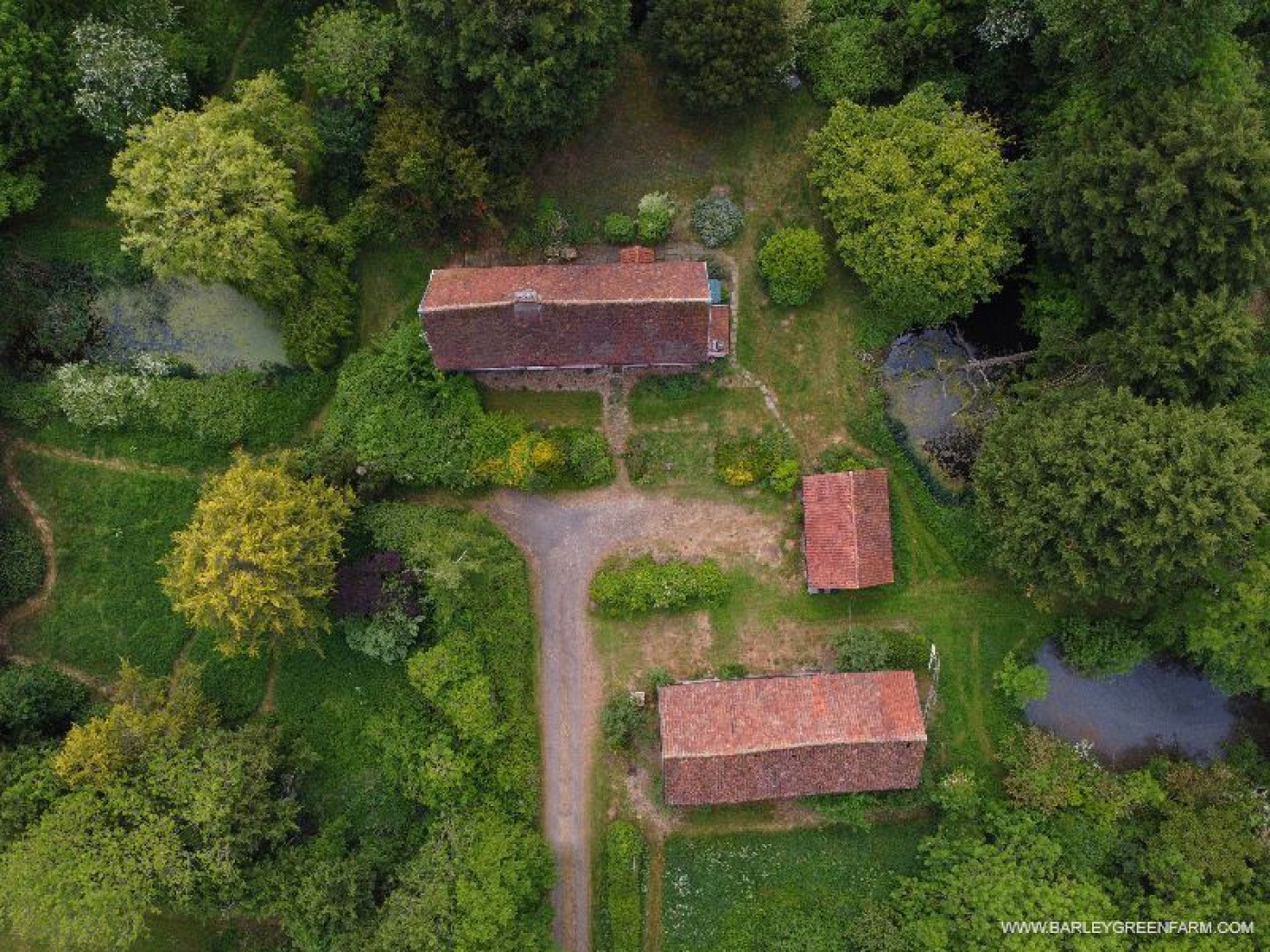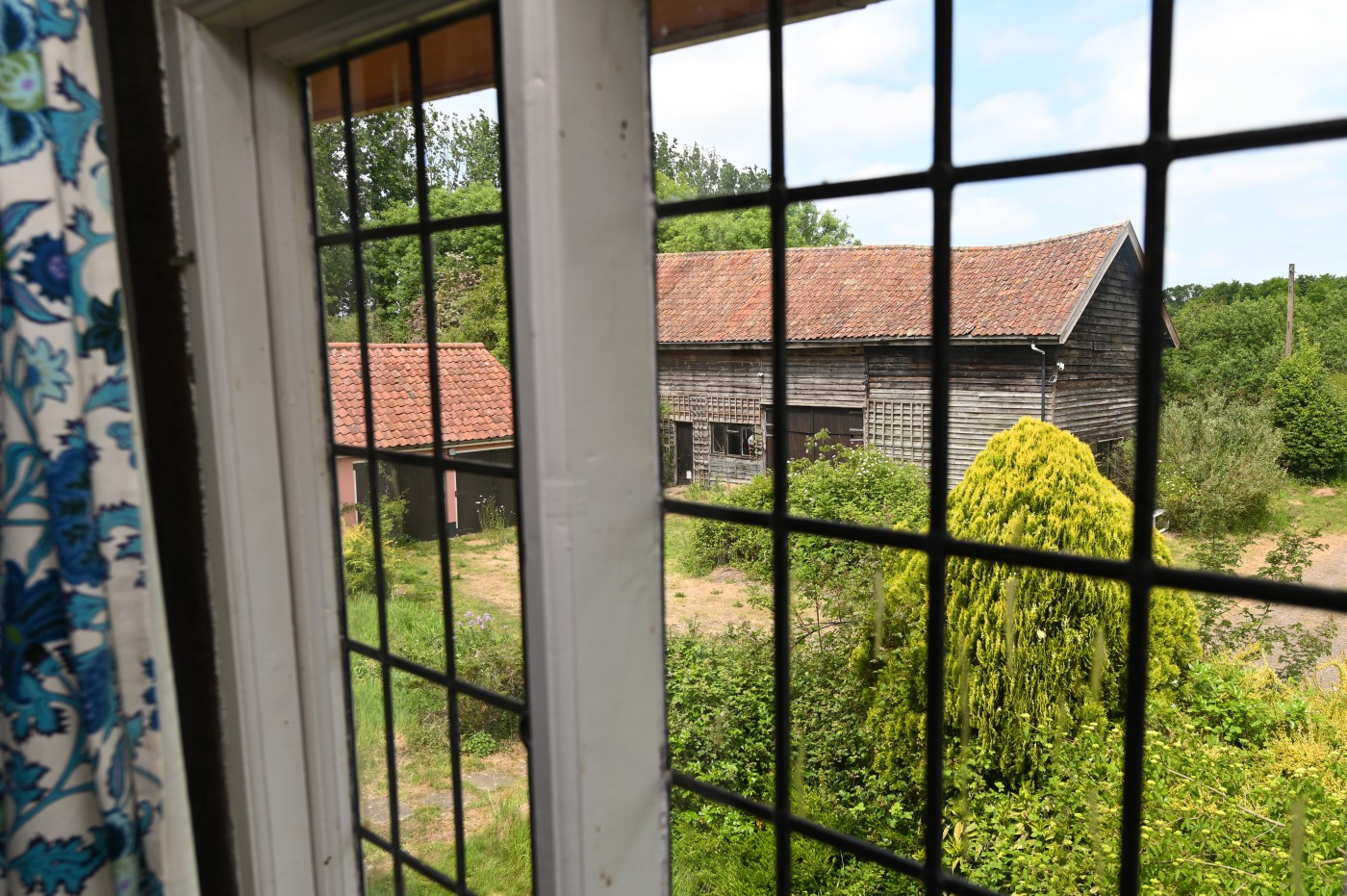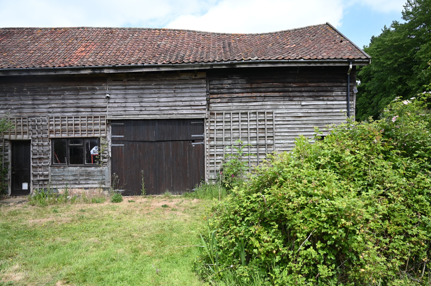 BARLEY GREEN FARM is a Grade II-Listed timber-framed moated Suffolk farmhouse with land and large barn (with planning permission) for sale.