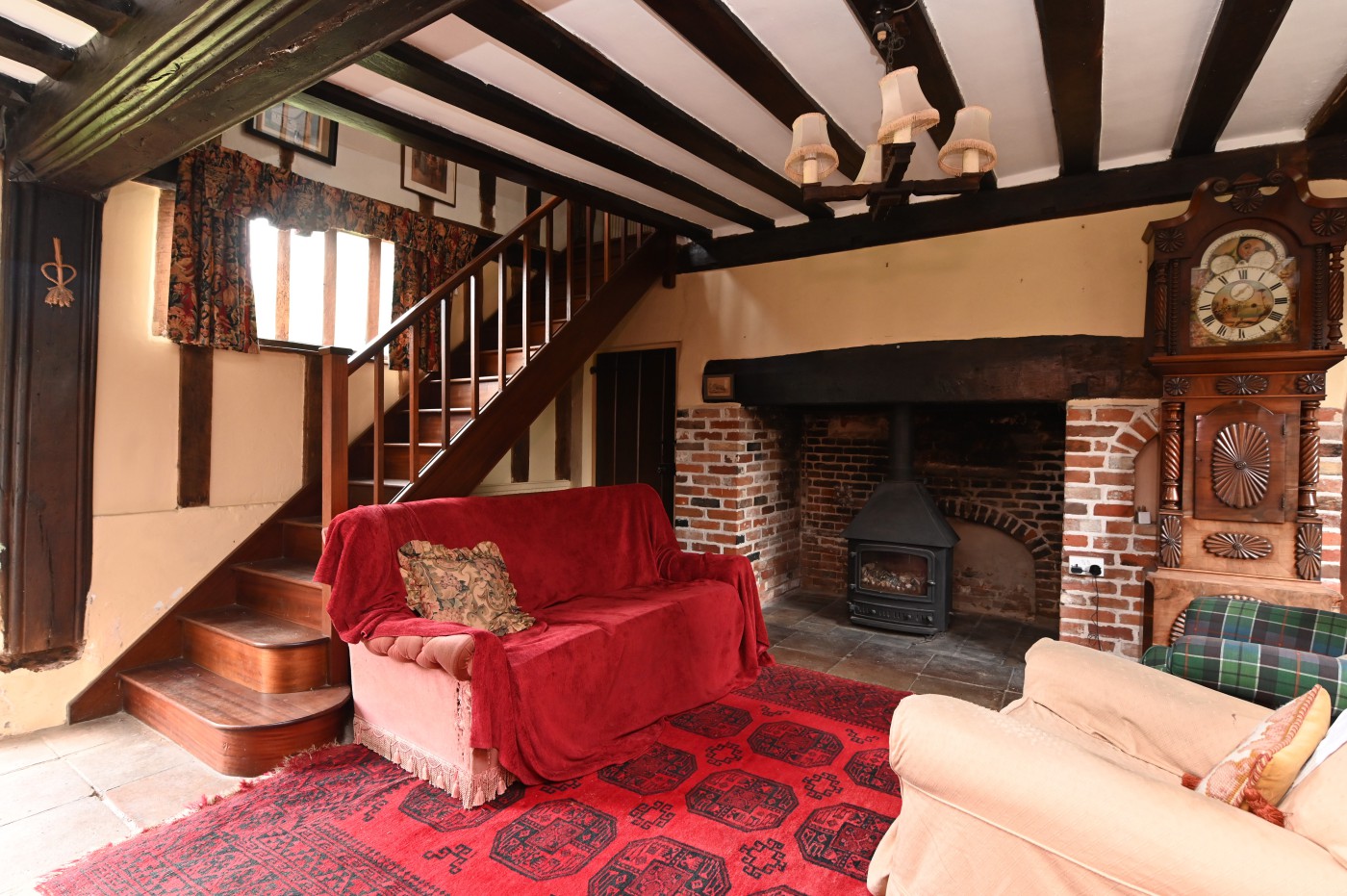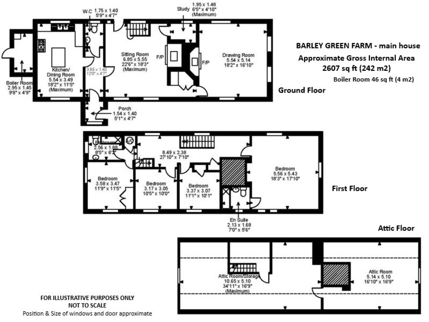 The house has a small rear porch/boot room and an attached boiler house. There is oil-fired central heating and two wood-burning stoves set in large inglenook fireplaces.