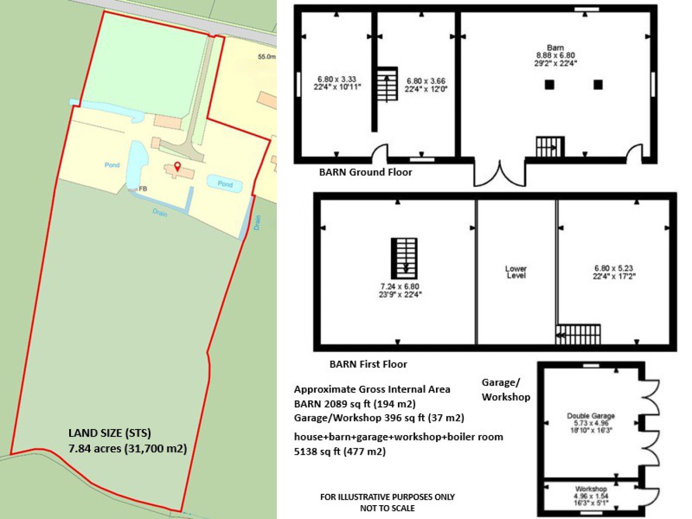 Detached Double Garage and workshop.