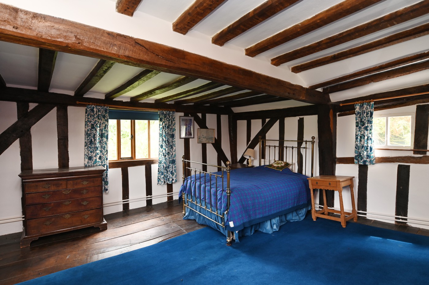 A charming 16th Century Grade II-listed timber-framed moated farmhouse, displaying many original features and set in 8 acres of tranquil greenery