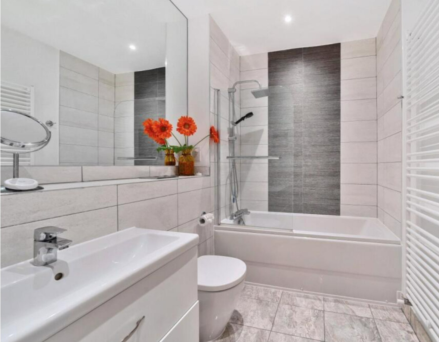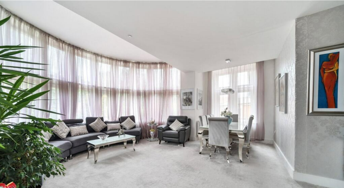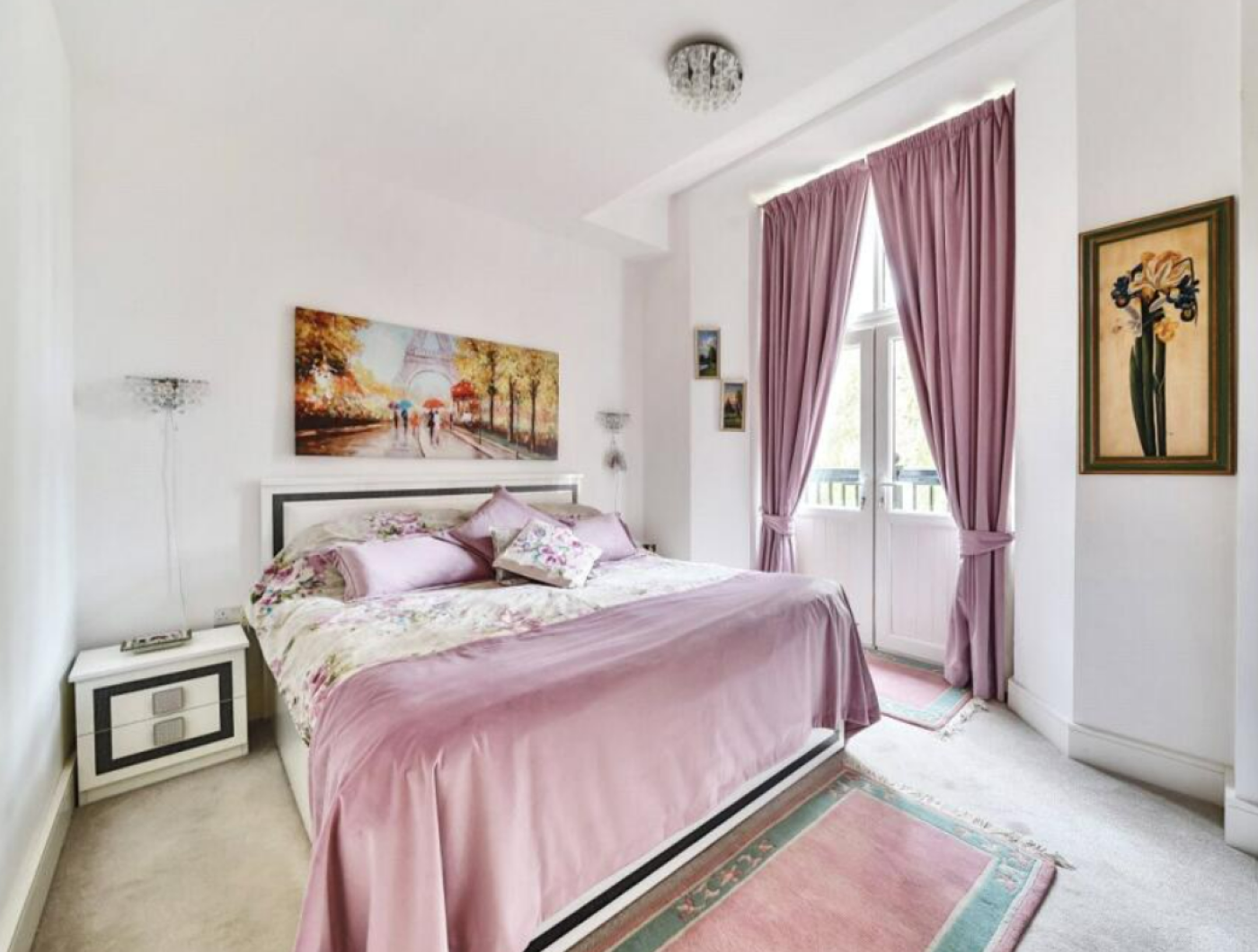 Among the property’s highlights are three generous bedrooms, two of which feature Juliet balconies. The main bedroom includes built-in wardrobes and is complemented by an en-suite bathroom.