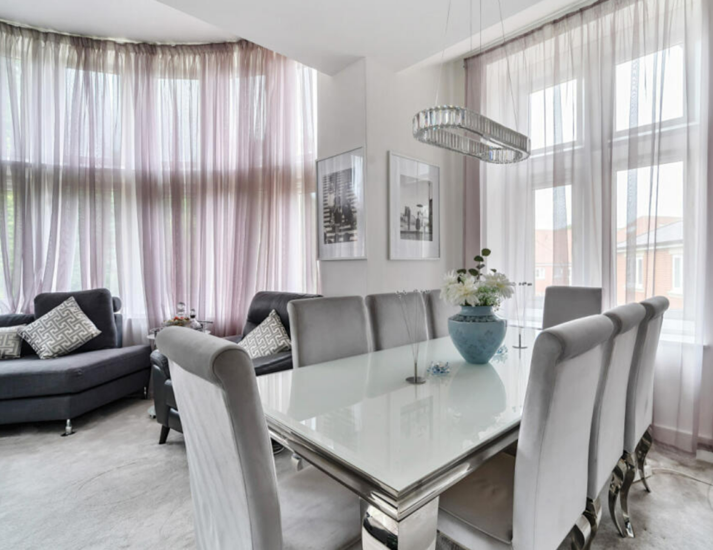 Filled with natural light, the open-plan kitchen, dining, and living area includes a large, 11-section south-facing bay window, plus two additional side windows that enhance the bright and airy atmosphere. The living space is both inviting and spacious, offering ample room for comfortable seating, relaxing, and entertaining.