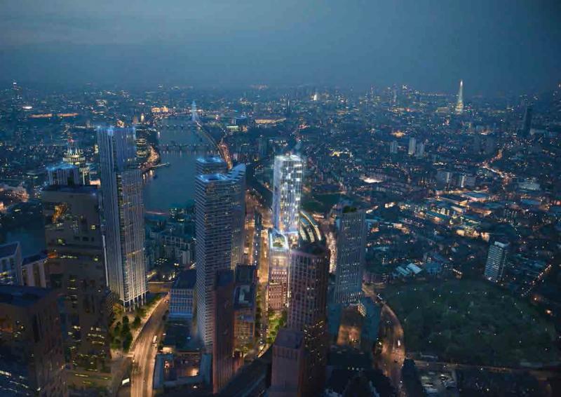 •Landmark 50-storey tower close to Vauxhall Station in the Nine Elms Opportunity Area