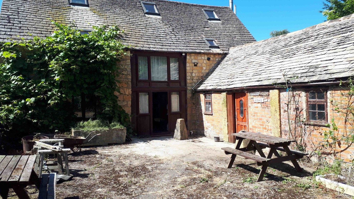 A cotswold stone barn conversion house with 2 large single story cotswold stone outbuildings and a tin barn set in 7 acres currently on the market. It was previously a cider mill tourist attraction with hard standing for vehicles. It is also currently on the market with Avon Estates in Evesham Worcestershire England