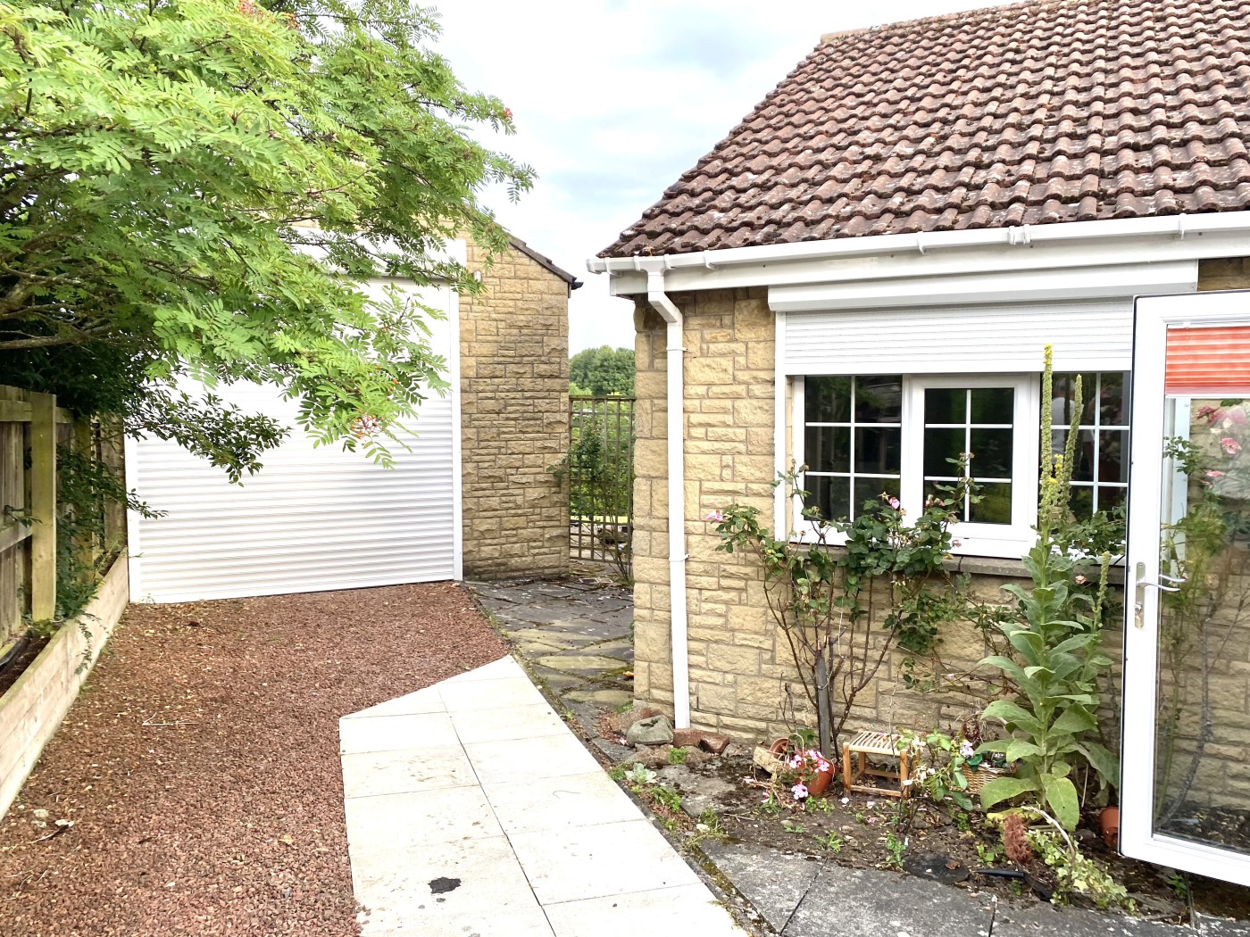 Externally, a large garage and