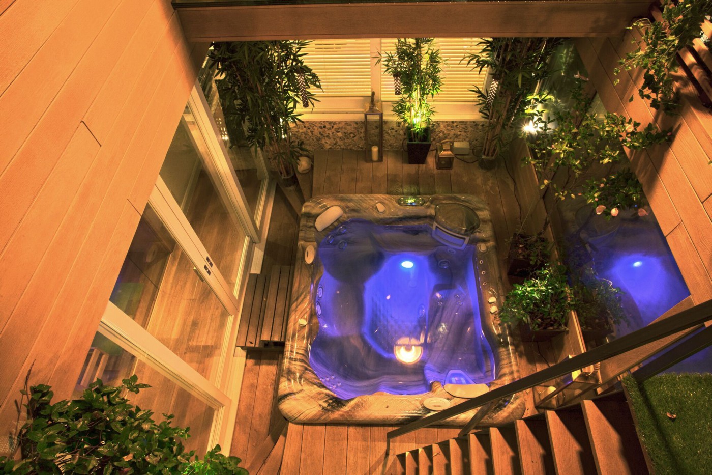 - Private patio featuring a jacuzzi for six people, ideal for relaxation, and a sauna for added luxury