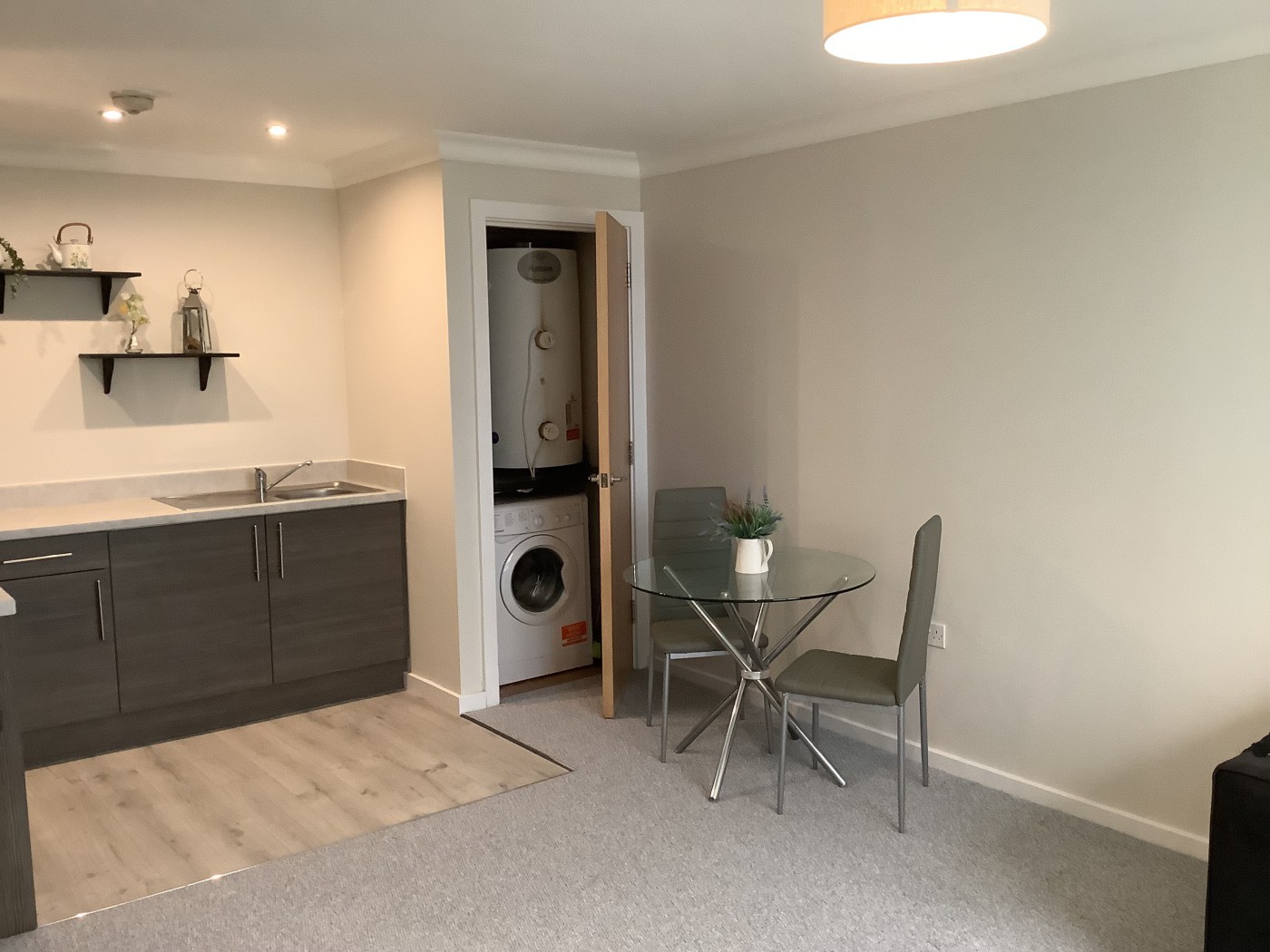 The apartment has been redecorated throughout with new carpets and
