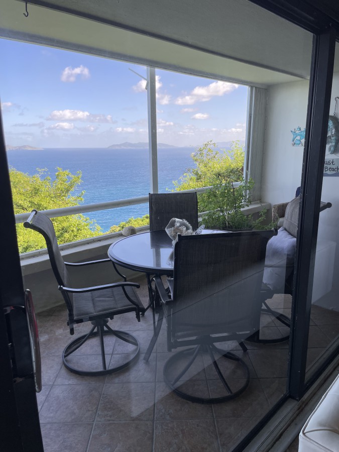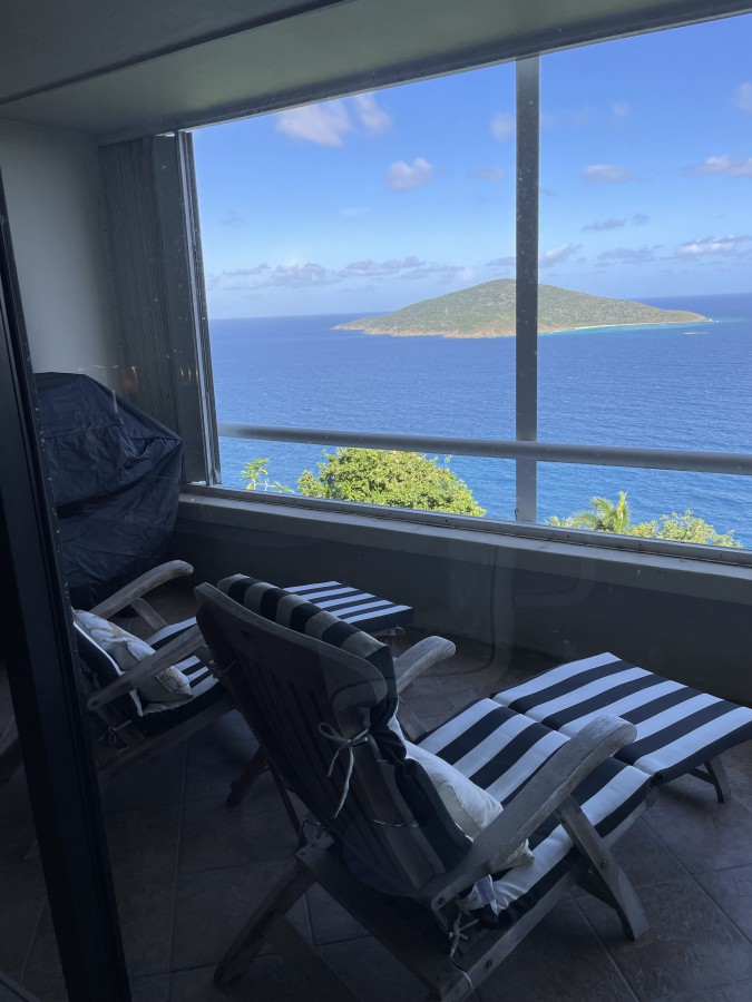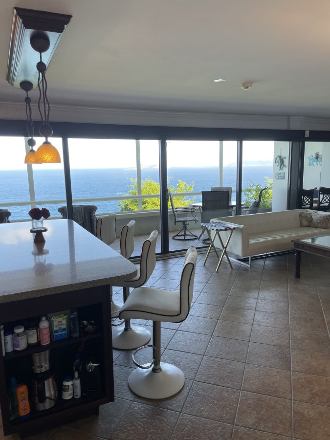 2 bedroom 2 bathroom condo with incredible panoramic ocean views from all the rooms in the house, including from the bathrooms. The condo is 5 minutes away from Maegen’s Bay, one of the best 10 beaches in the world. You can relax with your coffee or your drink on any of the two balconies that have breathtaking views of the ocean and of BVI.